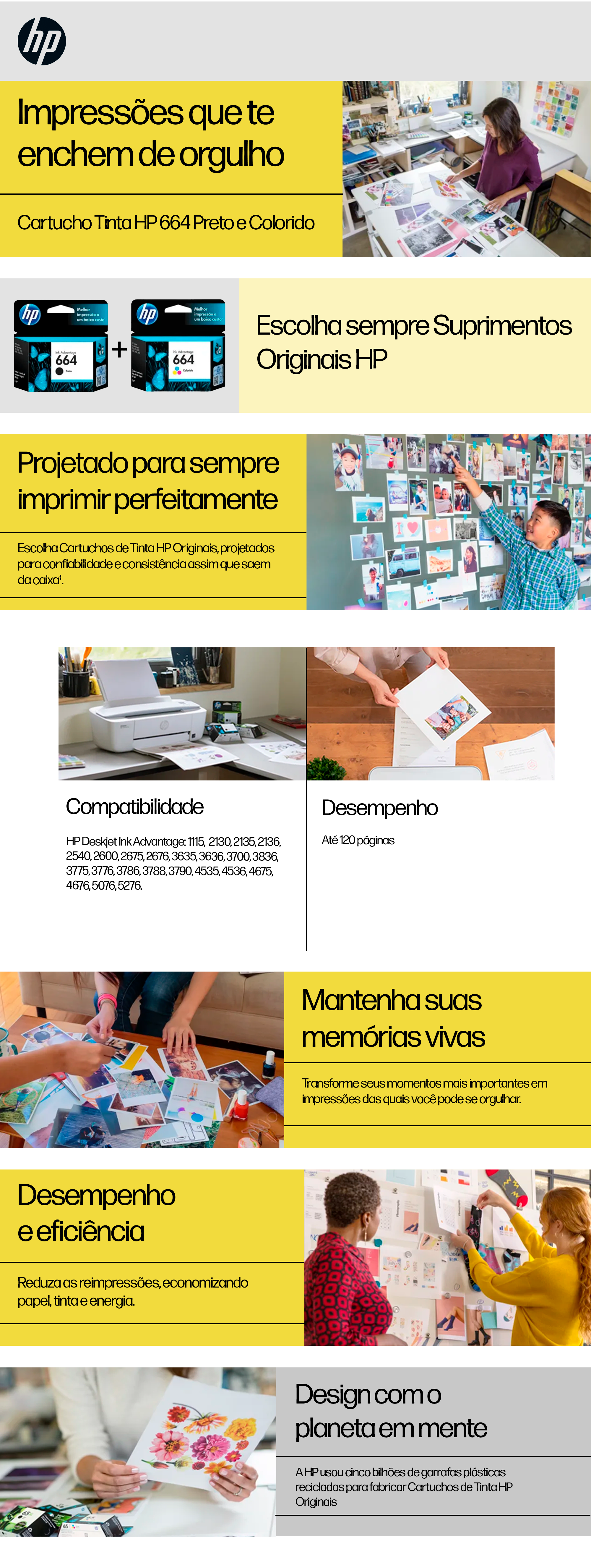 Crie documentos atraentes com os cartuchos de tinta HP, projetados para oferecer cores intensas e texto nítido e preciso.