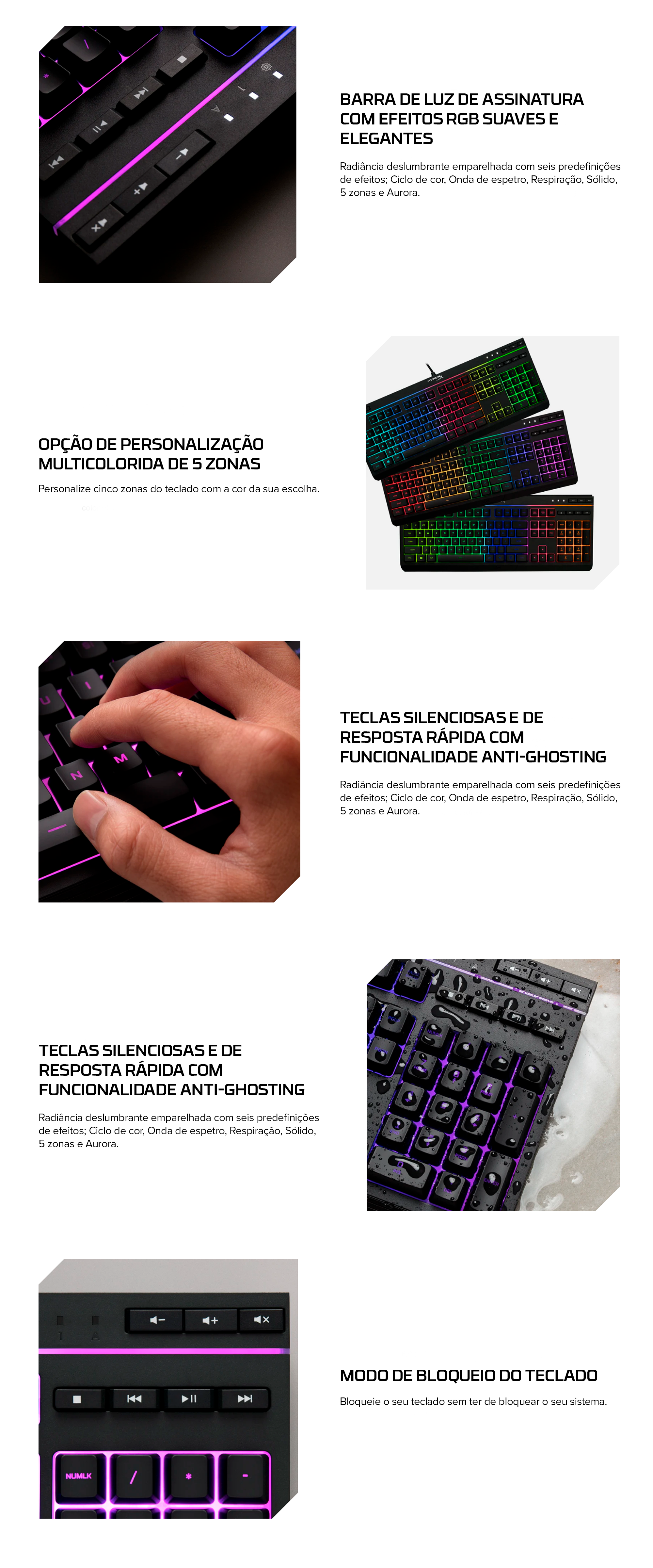 Teclas silenciosas e ágeis com a funcionalidade anti-ghosting